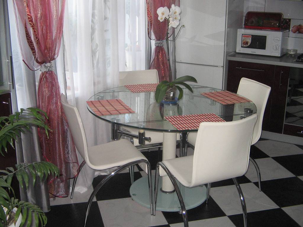 Овальные и круглые стеклянные столы на кухню