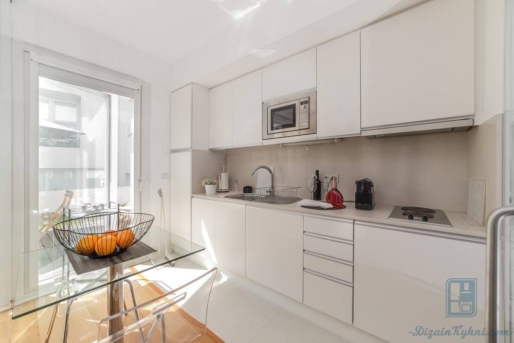 Однако поверхность столешницы придется беречь от загрязнений и царапин, которые на ней будут очень хорошо видны. Белый стол выглядит невесомо и нарядно, он подчеркивает изящество кухни и ее элегантность.