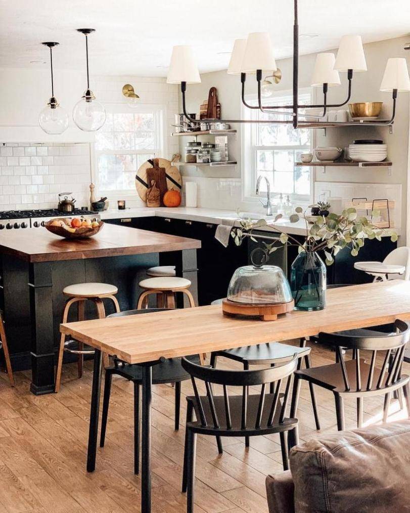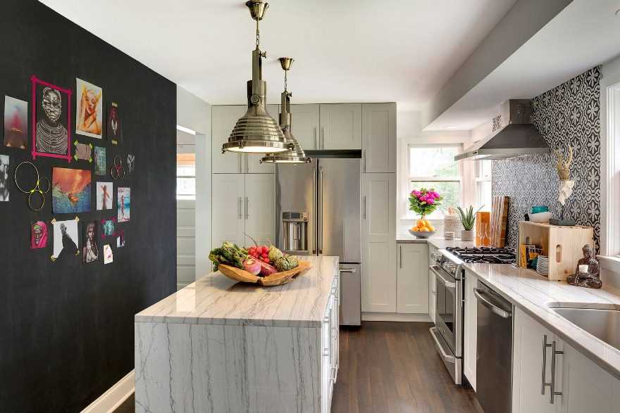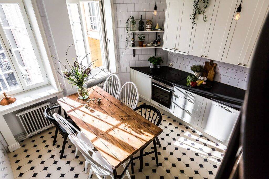 Тут с большего вкусовщина, но есть один универсальный вариант — белая кухня с деревянной столешницей. Это идеальный вариант по комбинации внешнего вида, цены и практичности. А ещё их практически нереально испортить. Серьёзно, многие пытались и делали всё остальное просто ужасно, но получалось всё равно как минимум неплохо.