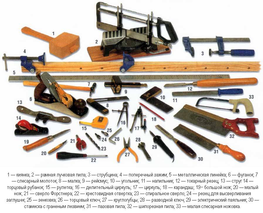Уделим теперь внимание инструментам, которые могут понадобиться при изготовлении дачной мебели своими руками. Необходимо подготовить: