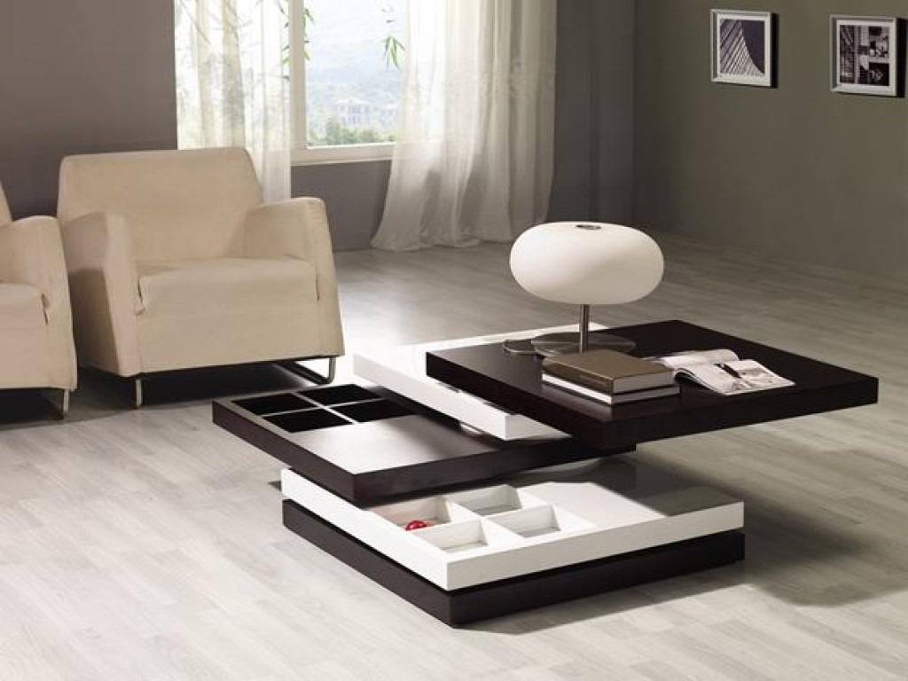 Гостиная в стиле минимализм или хай-тек требует столик простой конструкции, с потайными ящиками и столешницами, выполненными из металла.