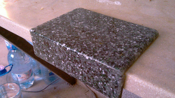 - Ремонтопригодность. Исправить недоразумение в виде небольшой царапины можно в два счета. Достаточно пройтись шлифовкой по поврежденному месту. Если обнаружен скол, то его можно заполнить новым слоем жидкого камня. После реставрации столешница приобретает первоначальный внешний вид.