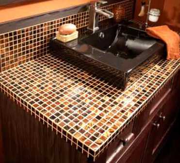 С помощью специального клеевого состава приступите к кладке плитки. Учитывайте, что чем ровнее будет кладка, тем аккуратнее будет смотреться столешница. Если хотите, чтобы поверхность получилась целостной, то не нужно оставлять расстояние между плитками. Оригинально смотрится столешница со швами, которые обработаны затиркой подходящего цвета. Столешница из керамической плитки красиво будет смотреться и в кухне. Главная ее особенность в рельефности, но к этому можно привыкнуть, если правильно продумать дизайн помещения.