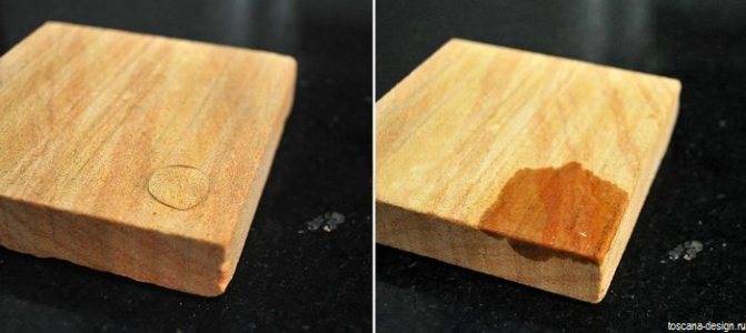 Наглядный пример отличия кварцевого агломерата от натурального камня. Натуральный камень склонен к окраске