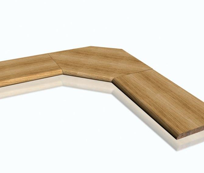 Первый вариант с использованием планки уже рассмотрен. Соединение по диагонали требует четкой разметки и выпиливания под углом 45 градусов. Части стягиваются мебельными стяжками, обработанными силиконом.