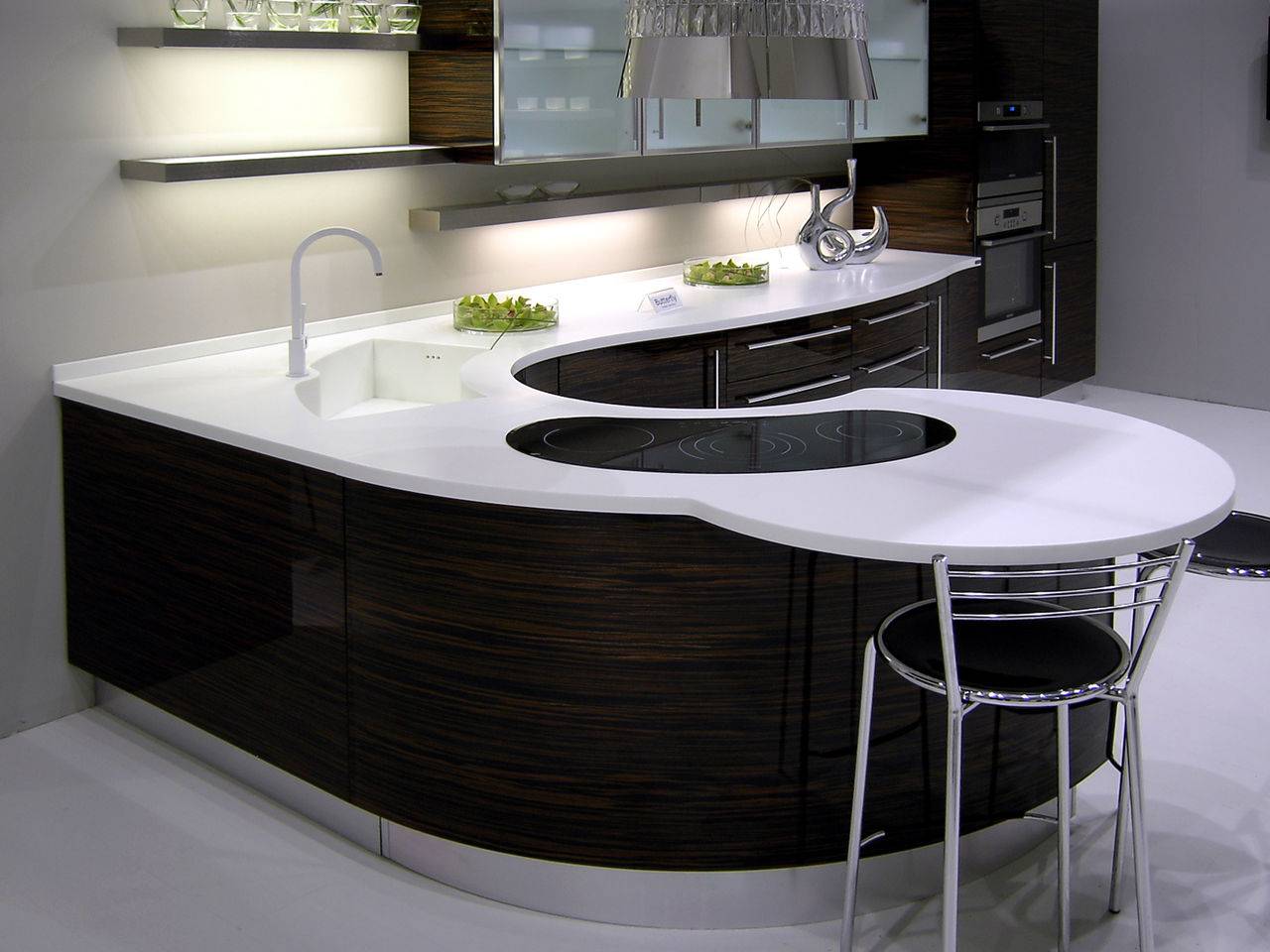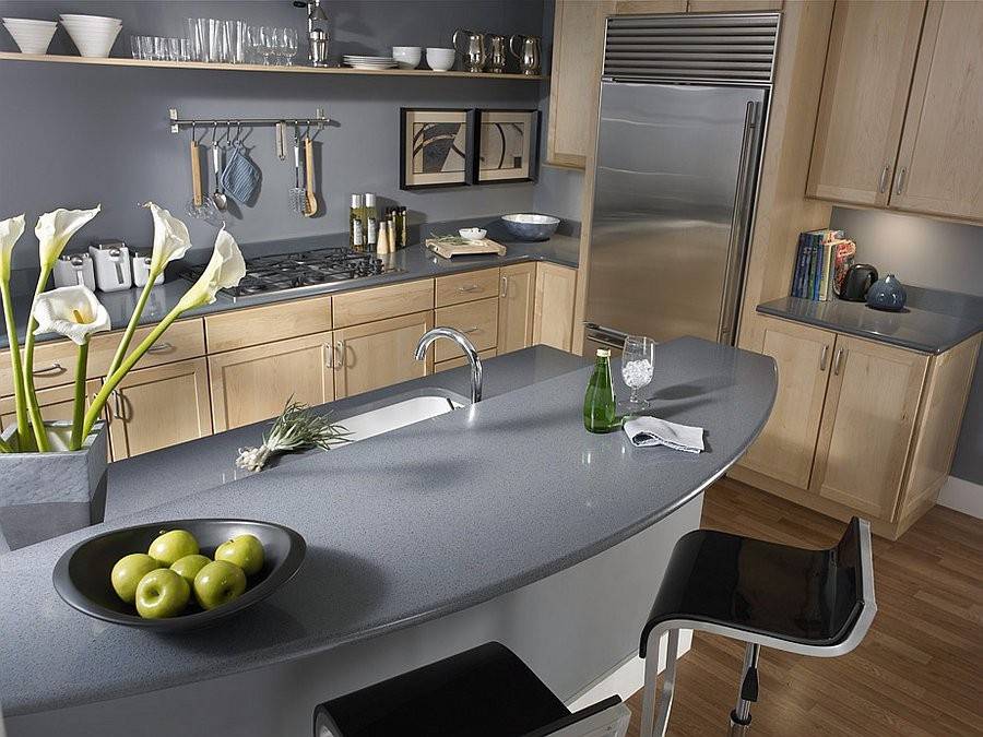 | Идеально подходит для сложных дизайнерских решений в современных кухнях. | Дороговизна (от 100 у.е. за кв.м.) как самой столешницы, так и всякого рода комплектующих, необходимых для ее полноценной установки. |
