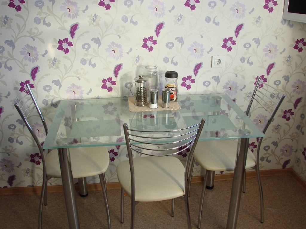 «Охлаждение» интерьера. Стекло отлично подходит для помещений, где всегда тепло или же окна выходят на солнечную сторону. Зимой холодная стеклянная поверхность не добавит уюта ни одному помещению. Поэтому, если вы все-таки отдали предпочтение именно такому столу, то можно постелить в помещении толстый ворсистый ковер или поставить деревянные стулья либо диванчик с тканевой обивкой.