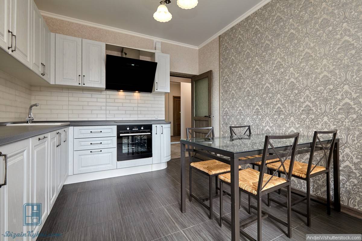 Черная столешница в интерьере кухни смотрится очень благородно и роскошно. Такое цветовое решение очень практичное. Дизайнеры чаще всего комбинируют ее с белыми фасадами кухонного гарнитура.
