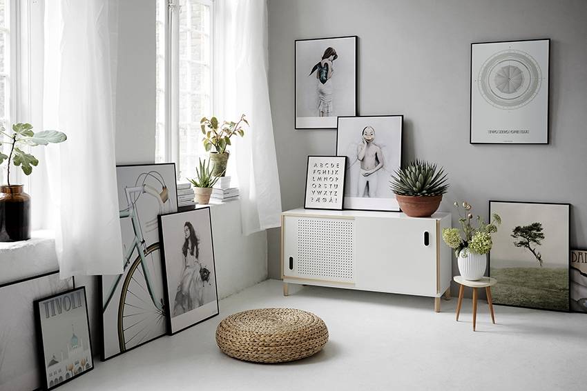 Идеальны большие комнаты с окнами на всю стену, стены лучше оформлять в белом фоне. Минимальное количество мебели, что не было лишнего.