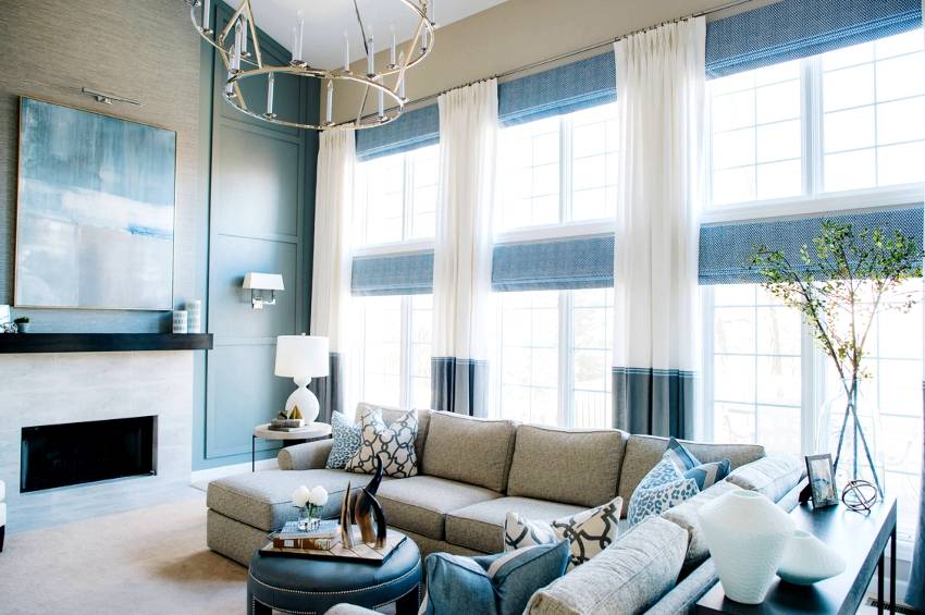 Большой выбор тканей, а также способов оформления штор способствует созданию уникального дизайна гостиной