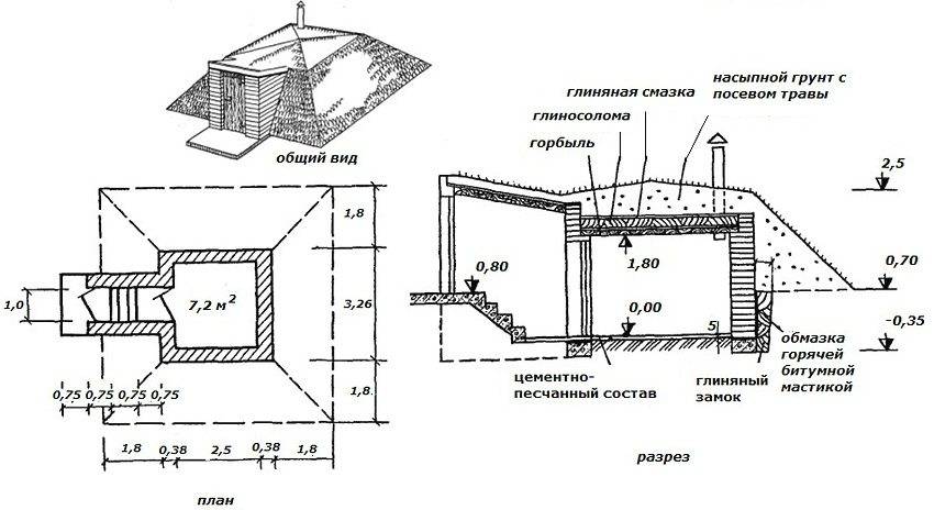 Важно, чтобы погреб был защищён тенью; особенно те части сооружения, которые не укрыты земляной насыпью. Входная дверь должна быть обращена к северу или на северо-восток