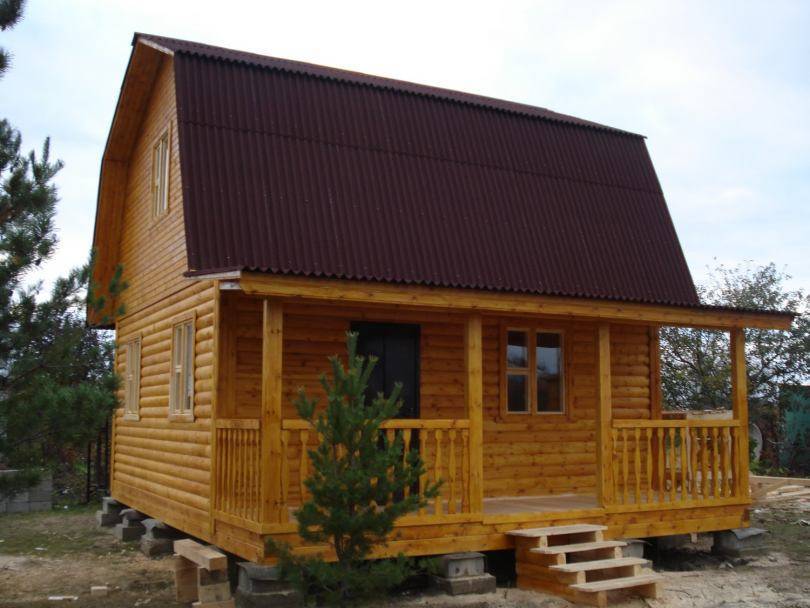 - Небольшой вес строения не требует заглубленного фундамента. Для него достаточно столбчатого, свайного фундамента. Такое основание одновременно убережёт строение от весенних паводков, сократит сроки строительства.