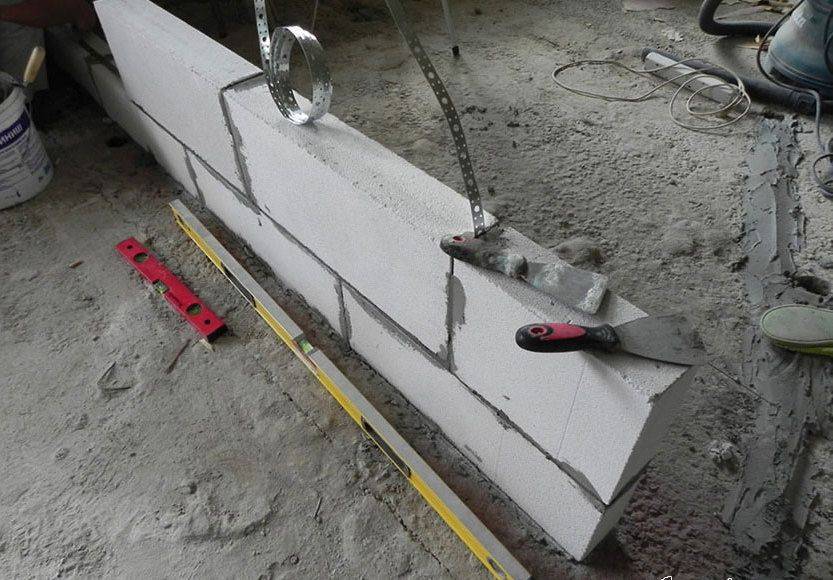 Разница лишь в том, что начиная со второго ряда блоки лучше укладывать на специальный клей для пеноблоков.