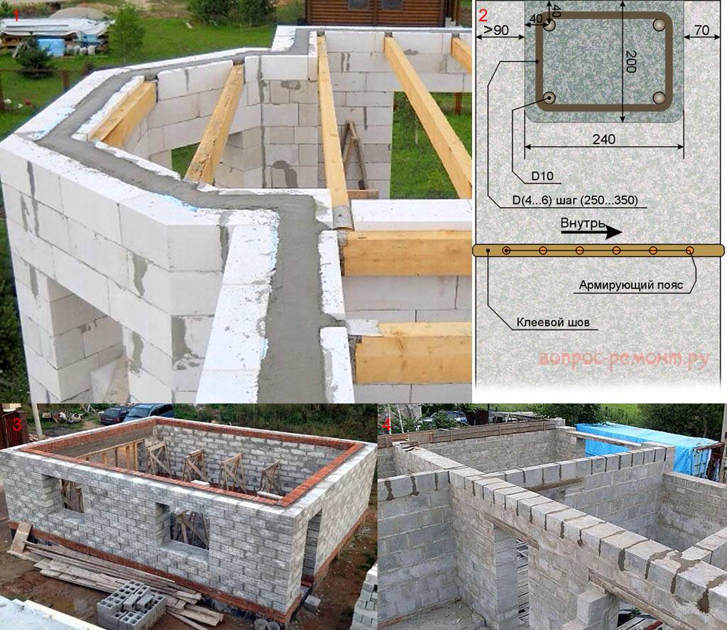 Возведение стен из пенобетона производите, соблюдая последовательность операций: