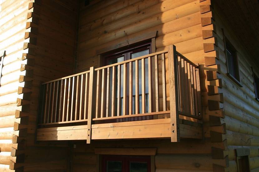 Такой балкон из бруса смотрится очень симпатичноИсточник brewdom.ru