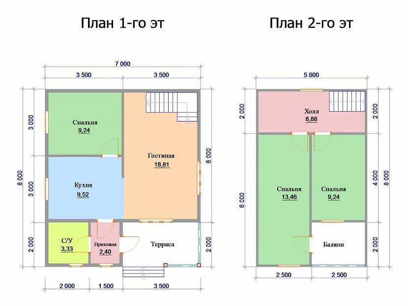 Планировка дома 7х8 с мансардойИсточник drevolog.ru