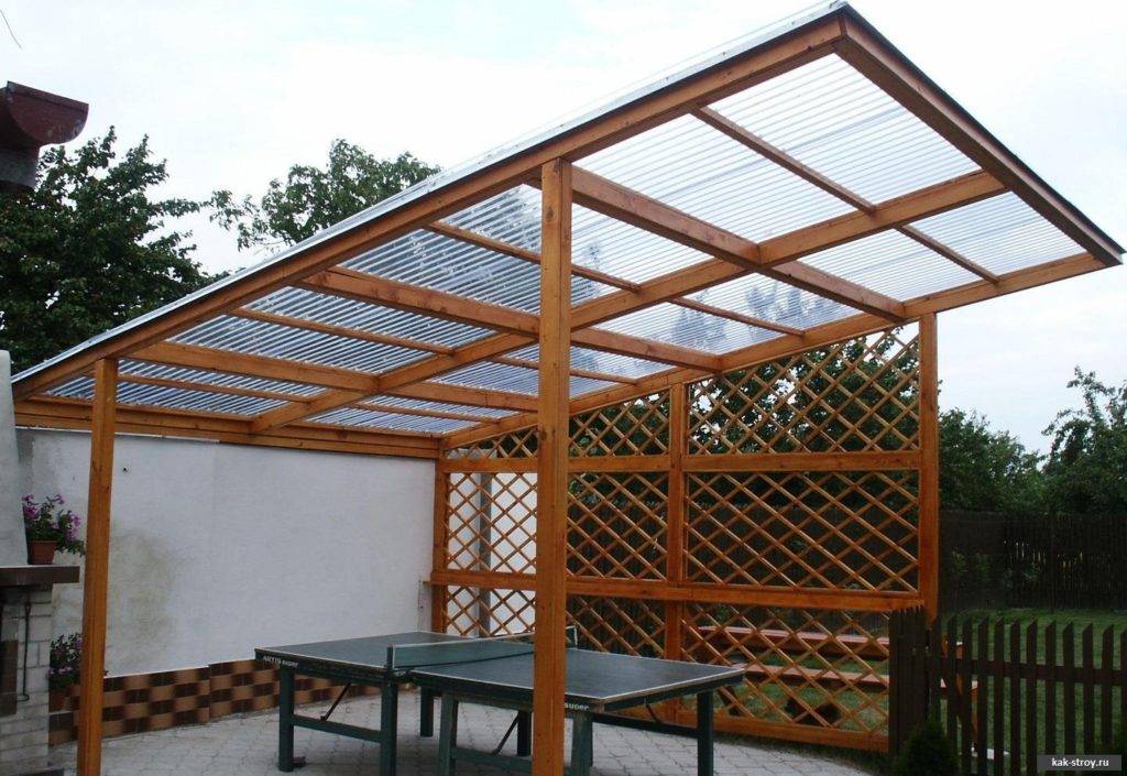 Обустройте стропила кровельной конструкции из досок толщиной 4-5 см. По длине стропила должны приблизительно на 50 см превышать длину каркаса.