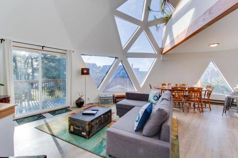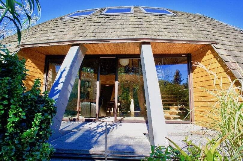 Еще очень удобно, что геодезический купол позволяет делать окна и двери для дома в любом количестве и в любом месте. Только стоит учесть тот факт, что окна будут иметь форму треугольника.