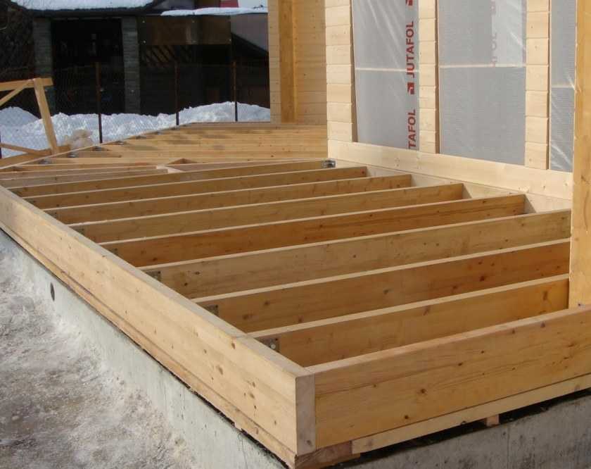 Важно выполнить консервацию дощатого пола. Между лагами – шаг 1000 мм, можно усилить конструкт и сделать шаг 600 мм.