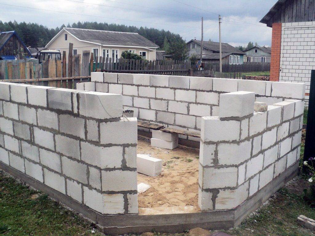 Проёмы под дверь и окна необходимо оставить в ходе постройки. Блоки над проёмами кладутся на доску или лист металла.