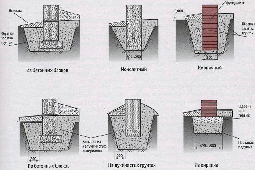 Конструкция заглублённого и незаглублённого фундамента