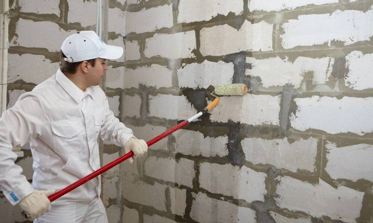 Подготовка стен, грунтование газобетона