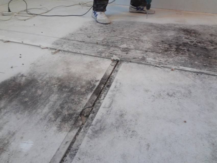 Производится тщательная уборка мусора, пыли на бетонном основании. Если на перекрытиях имеются наплывы, они должны быть счищены, а имеющиеся трещины устранены с помощью цементно-песчаного раствора.