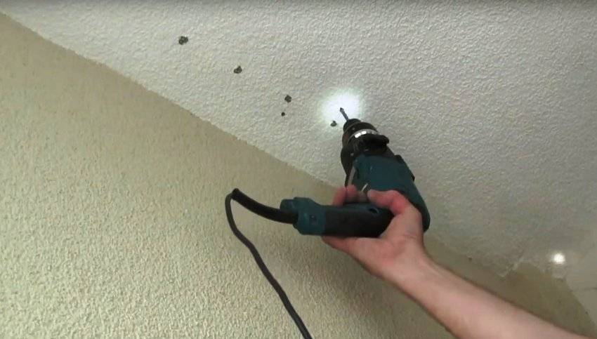 На потолочной поверхности сделайте метки путём приложения кронштейнов и точно определив расстояние с помощью стержня конструкции, равное его длине.