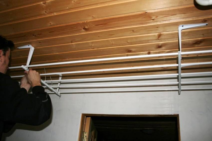 Весомое преимущество потолочной сушилки состоит в том, что ее можно устанавливать на любую поверхность, будь то дерево или бетон. Кроме того, повесить сушилку на потолок не составит особого труда, а сам процесс требует мало времени.