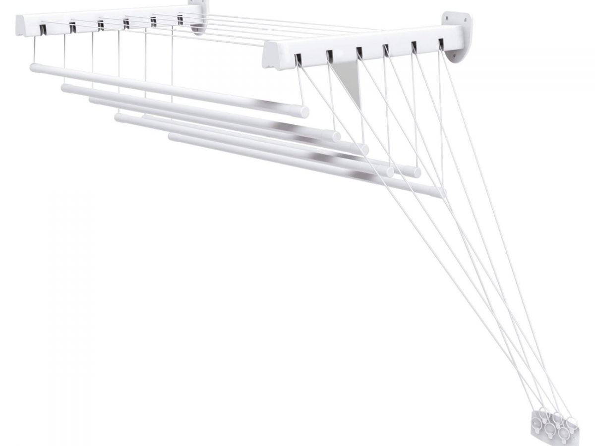 Более современная сушилка, подразумевает скрытое хранение, пока не используется. Подобные модели больше являются настенными, чем потолочными. Самым вместительный и практичный вариант – рулонная сушилка, представляющая несколько веревок, при необходимости прокатываемых до противоположной стены.