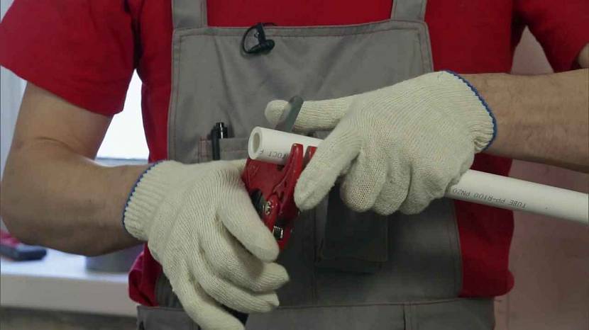 - Обрежьте полипропиленовые элементы при помощи специальных ножниц. Разрез должен быть перпендикулярным к оси.