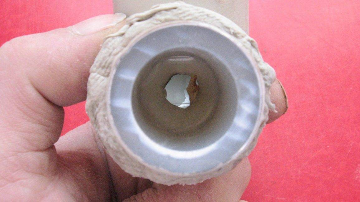 - Очистите раструб фитинга. В качестве обезжиривающего вещества можно использовать обычную мыльную воду. Некоторые строительные эксперты рекомендуют использовать спиртовой раствор.