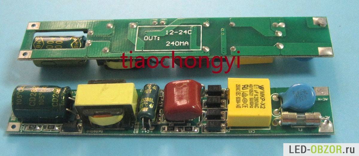 - Если используется внешний драйвер, то напряжения понадобится всего 12 вольт.
