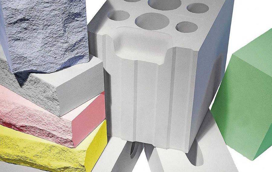 90% приходятся на песок. Возможны несколько процентов пластификаторов и красителей. Последние позволяют отойти от укоренившегося имиджа белого материала. Пластификаторы увеличивают морозостойкость блоков.