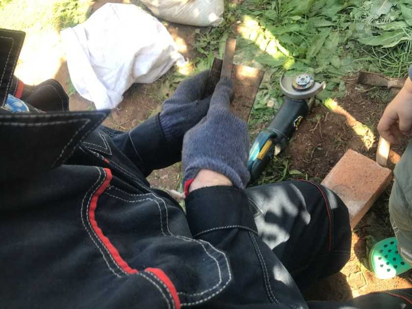 - Сначала готовят круглую площадку под тандыр. Для этого на земле или на листе бумаги рисуют круг диаметром 75 см и выкладывают на него кирпичи, срезая болгаркой всё лишнее.