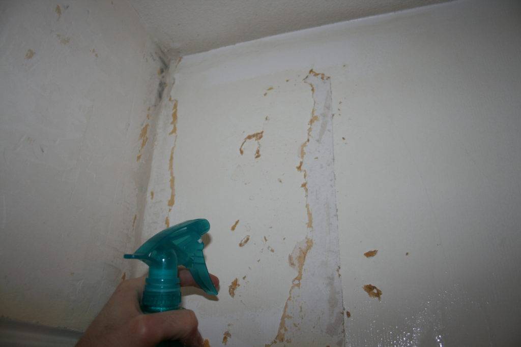 Водостойкие обои не пропускают воду. Поэтому перед их удалением сделайте небольшие разрезы на полотне, чтоб вода добралась до клея. Если у вас и клей водостойкий, то удалить его можно только при помощи дрели или шлифовальной машинки. После удаления старой отделки стену нужно тщательно промыть несколько раз. Если на ней есть пятна от них нужно избавиться. Жир убирается керосином или нашатырным спиртом.