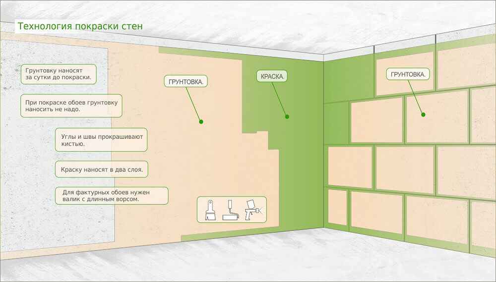 Также важно строго соблюдать порядок работ. Часто окрашивать стены не так сложно, как подготавливать – в особенности, если их нужно выровнять или провести другие дополнительные мероприятия