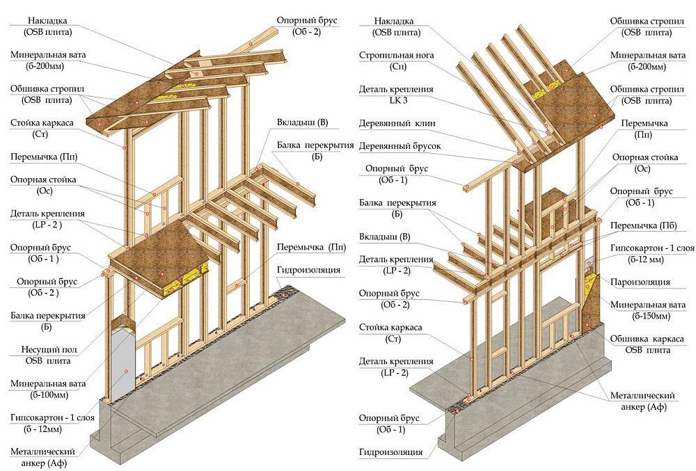 Особое внимание стоит уделить креплению всех элементов, будь то соединения стропильной системы, стоек, обвязки и других частей из бруса