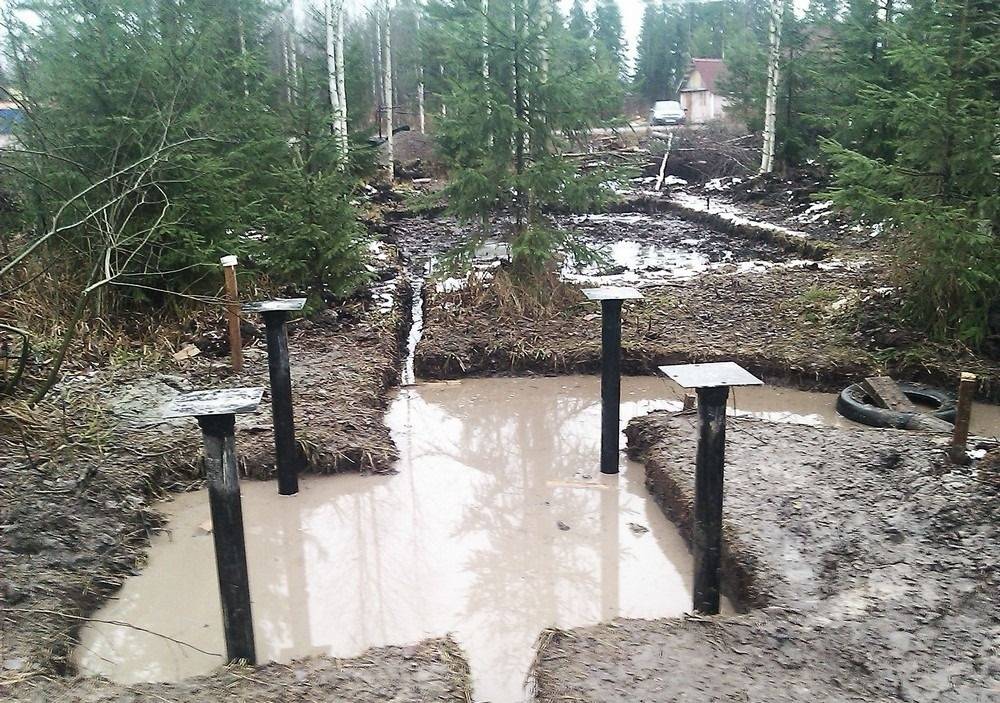 Понадобится позаботиться об изоляции траншеи от попадания проточной воды. Для этого обустраивается конструкция из канав и отвалов. Основа базиса закладывается сразу после рытья ямы, это позволяет увеличить прочность.