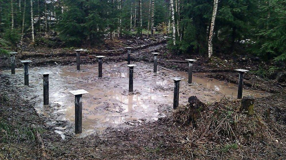 Убедиться в этом можно только дальнейшим вкручиванием опор. После проведенного разведывательного вкручивания необходимо нанести пометки на сваи с указанием глубины, на которой находится требуемый слой. Такая нехитрая операция позволит избежать нескольких десятков тысяч расходов на анализ почвы. Но в большинстве случаев его лучше всего выполнить, т. к. полученные данные будут более надежными. Если местность отличается обилием грунтовых вод, тогда могут использоваться буронабивные сваи из стальных труб. В этом случае для фундамента забиваются полые трубы до определенного уровня грунта.