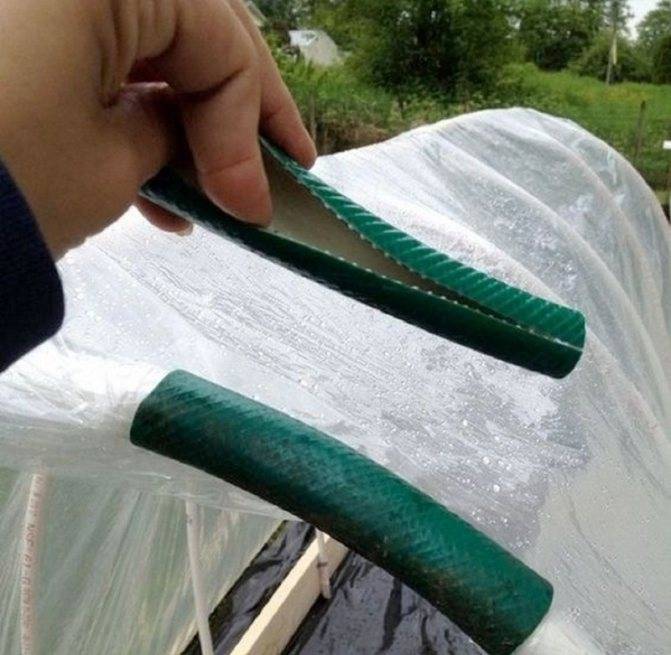 С помощью старого шланга можно сделать неплохие зажимы, которые отлично подойдут для небольших парников.
