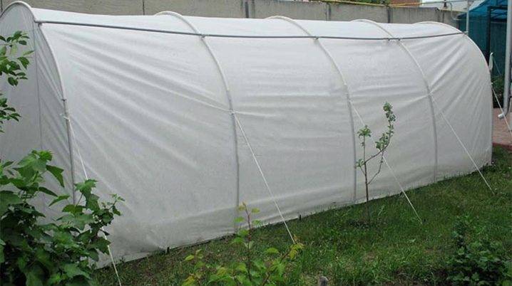 - Нетканый материал – хорошо пропускает свет и воду, обеспечивая посадкам защиту от негативных погодных факторов. Минусы: недолговечность. Например, спанбонд или лутарсил в качестве укрытия парника прослужат не более 5 лет. Прочность их также не слишком высокая, укрытие может порваться во время сильного ветра или под весом слоя снега.