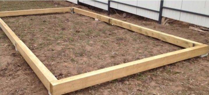 Для основания используется крепкий брус из древесины, из которого изготавливают короб классической прямоугольной формы. Его высота должна быть не больше пятнадцати сантиметров. Готовую конструкцию ставят туда, где будет размещен парник.