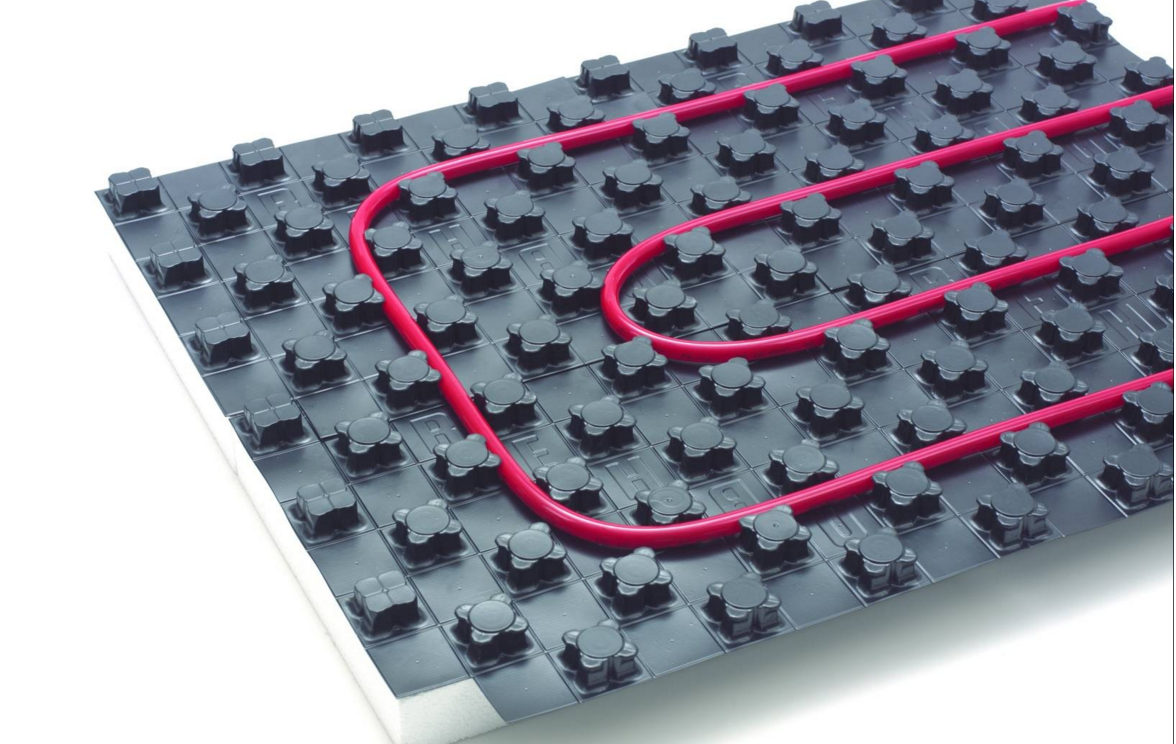 На цене ремонта это отразится лишь незначительно, так как подобные маты, по сути, совмещают теплоизоляцию, гидроизоляцию, армирующую сетку и крепёж. Трубы, уложенные в соответствии с выбранной схемой, необходимо закреплять на полу специальными хомутами, а бобышки теплоизолирующих матов избавляют от такой необходимости.