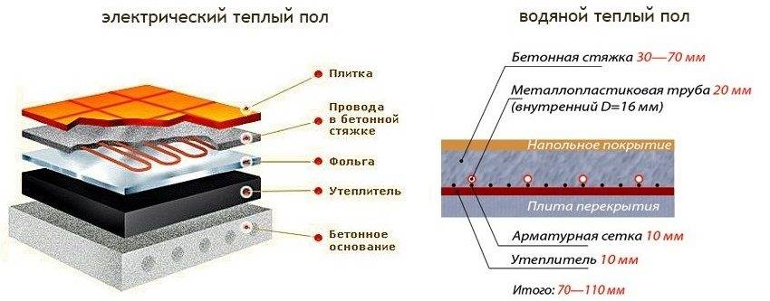 Как уже было сказано выше, монтаж электрического и водяного пола имеет значительные различия в технологии. Для того, чтобы получить дополнительные аргументы при ответе на вопрос, какие теплые полы лучше под плитку, рассмотрим особенности устройства того и другого типа.