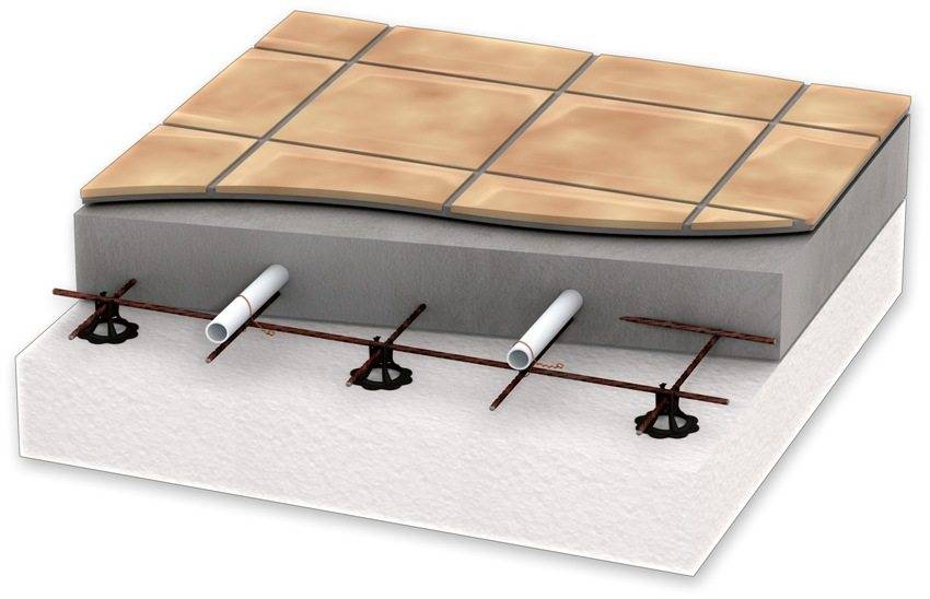- Термостойкой подложки, снижающей тепловые потери (подложка препятствует ненужному прогреву самой плиты перекрытия).