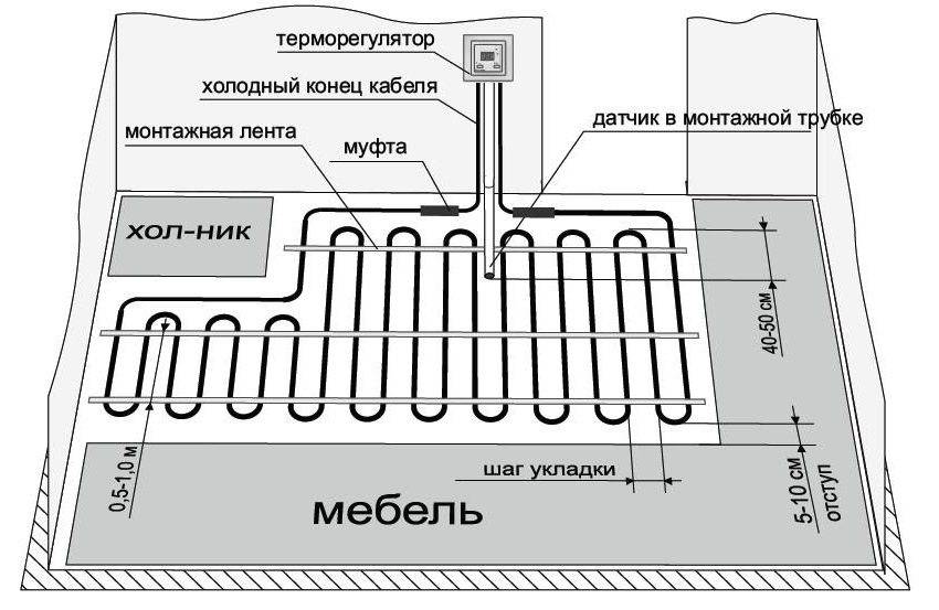 Пример обустройства теплого пола с датчиком температуры и термостатом