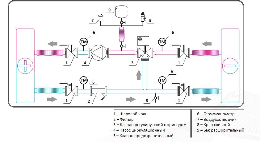 Комплектация системы ТП теплообменником имеет следующие преимущества: