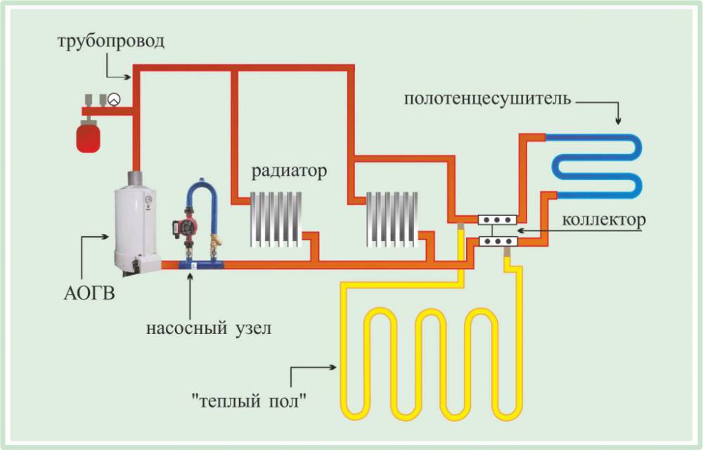Контур под полом находится на одном уровне, поэтому естественное передвижение воды исключено. Подключаться напрямую к магистральному трубопроводу тоже нельзя. Там может циркулировать теплоноситель с температурой, в 2 раза превышающей допустимую для ТП.