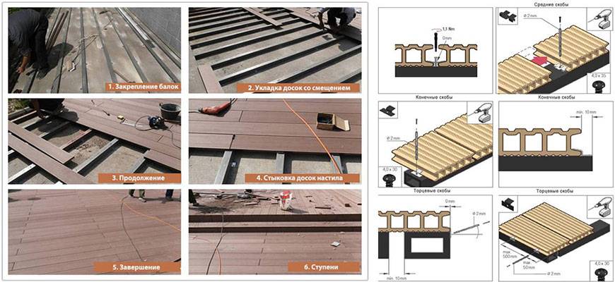 Закрытый способ немного сложнее и дороже, но одновременно и эстетичнее. Его, как правило, используют при монтаже ДПК, который осуществляется в несколько этапов.